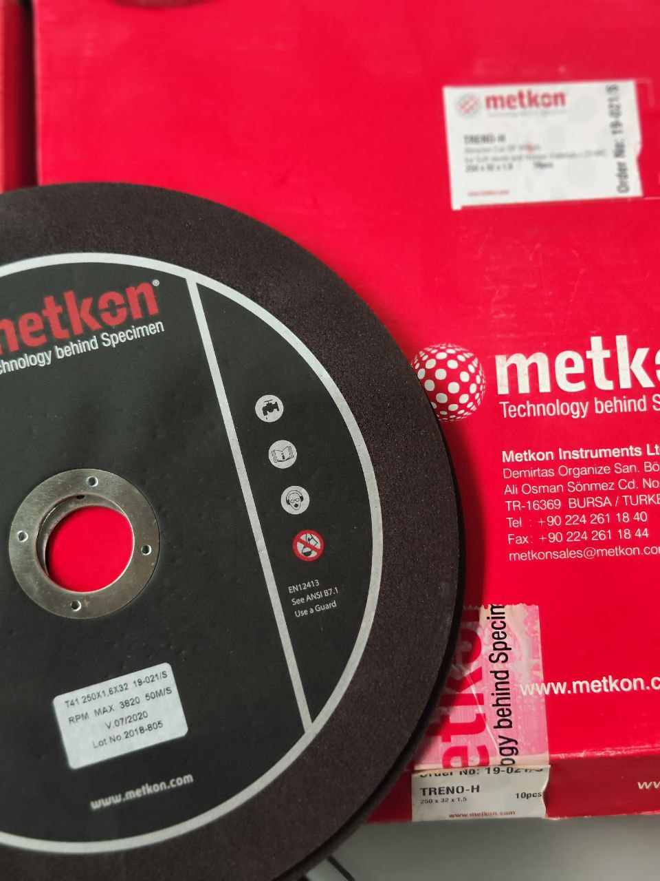 Для абразивной резки металлических образцов подходят абразивные отрезные диски METKON серии TRENO и CUTO. Абразивные отрезные диски этих серий выпускаются диаметром 150 мм, 200 мм, 250 мм, 300 мм, 350 мм, 400 мм, 432 мм и 500 мм и используются на абразивных отрезных станках METKON METACUT и METKON SERVOCUT. Абразивные отрезные диски диаметром 150 мм и 200 мм могут быть использованы на отрезных прецизионных станках METKON MICROCUT.